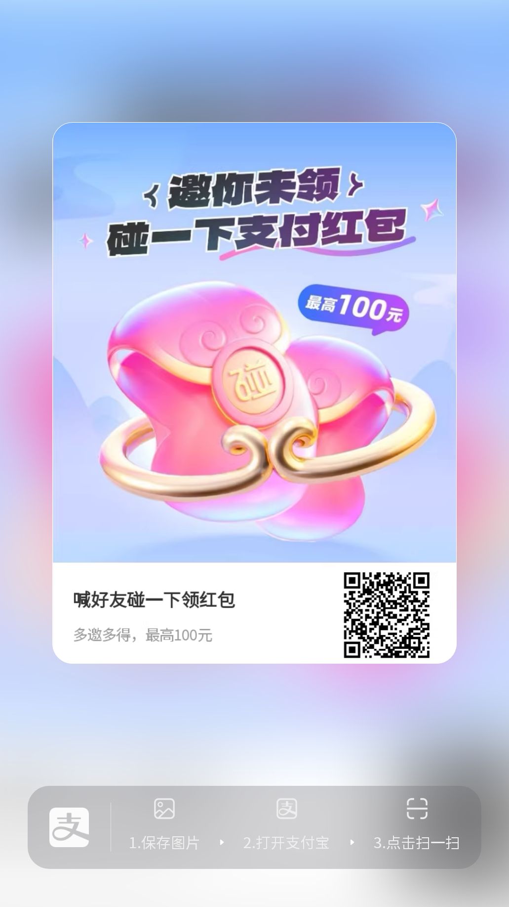 打开支付宝扫一扫下方二维码领取红包
